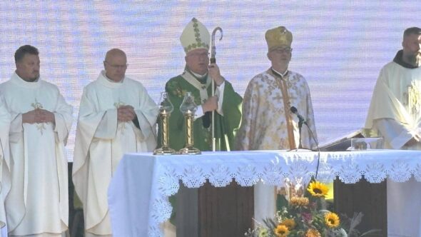 Dożynki rozpoczęły się korowodem wieńców dożynkowych na miejsce sprawowania Eucharystii, której przewodniczył abp Józef Górzyński. – Pierwsi są rolnicy, którzy widzą związek między Bożym porządkiem, Bożym prawem wpisanym w naturę…