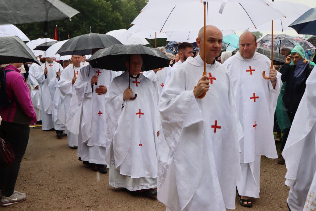 – Cała archidiecezja warmińska jest poruszona, bo dziś każdy chce być w miejscu, gdzie 148 lat temu Matka Boża przemówiła po polsku, przemówiła w czasie, kiedy naszej ojczyzny nie było na mapach świata. Prosiła o codzienne i gorliwe odmawianie Różańca, prosiła o nawrócenie i trzeźwość. Przyszliśmy i my! – mówił ks. Paweł Szumowski, dyrektor Warmińskich Pielgrzymek Pieszych. – Mimo deszczowej aury, nikt się nie przestraszył. Taka jest nasza wiara. Szli młodzi i starsi. Tłum ludzi. To budujące – nie krył zadowolenia.