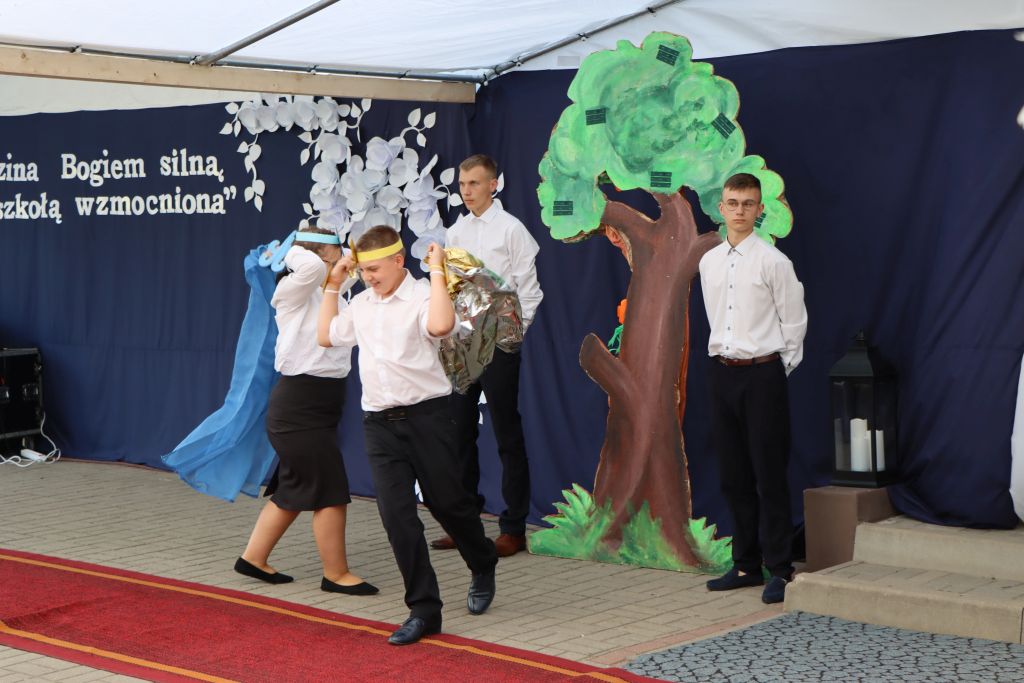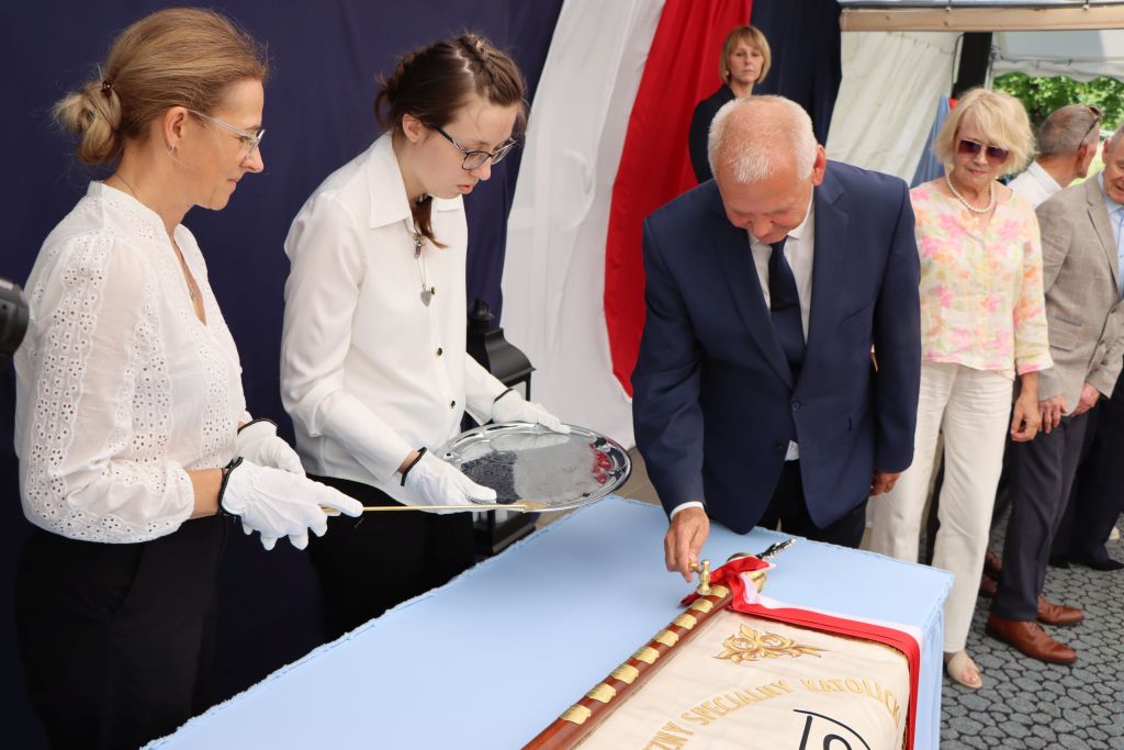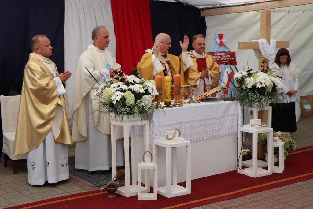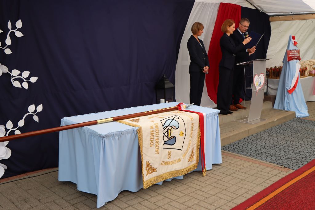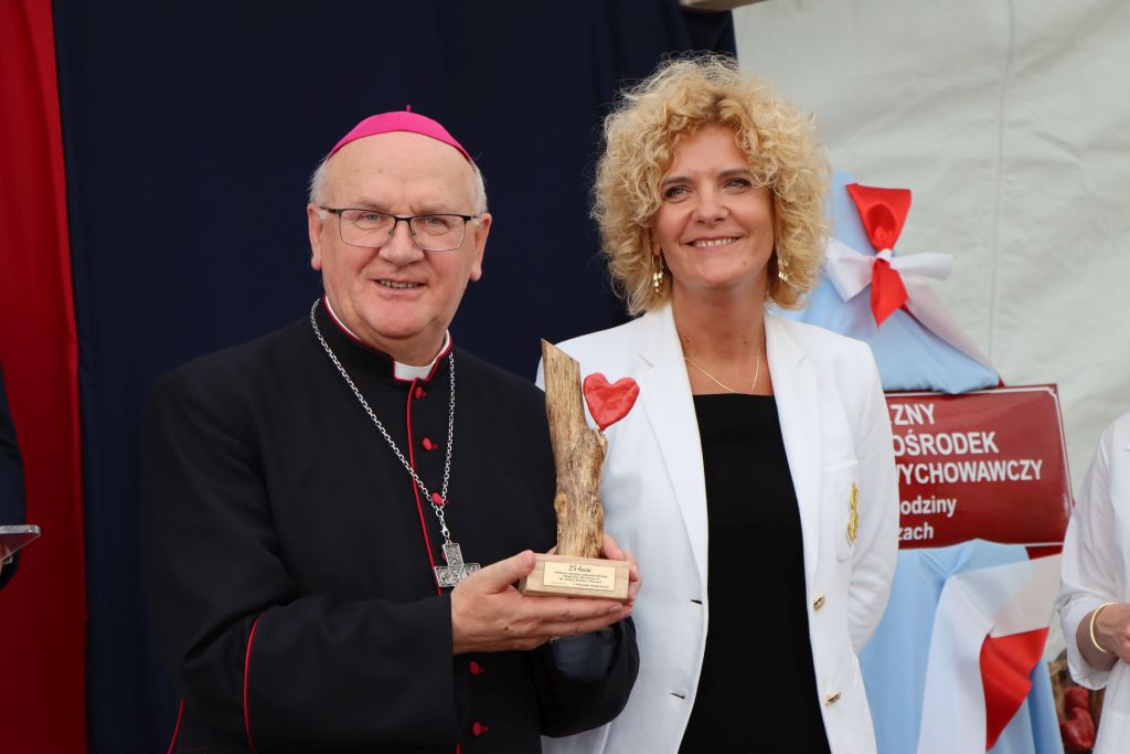 Uroczysty jubileusz rozpoczęła Eucharystia. W kazaniu abp Józef Górzyński podkreślał znaczenie funkcjonowania takich miejsc jak ośrodek w Kruzach. – Modlimy się dziś, aby Bóg dał siłę do funkcjonowania takich miejsc, siłę tym, którzy podejmują się trudu. Niech to dzieło owocuje człowieczeństwem, w którym dajemy szansę dojrzewać każdemu. Jesteśmy wspólnotą, nie możemy zrezygnować z niektórych, zostawić ich tylko dlatego, że sami sobie nie radzą. Idziemy razem, bo Kościół jest wspólnotą. Jesteśmy odpowiedzialni za siebie i za to wam dziękuję – mówi abp Józef Górzyński, metropolita warmiński. Po wspólnej modlitwie nastąpił wyjątkowy moment – prezes Akcji Katolickiej, Wojciech Hanelt odczytał treść podjętej uchwały, która nadaje ośrodkowi w Kruzach imię Świętej Rodziny. – Ten ośrodek to nasza perła w koronie. Cieszymy się bardzo, bo to miejsce staje się bardziej autonomiczne. Patrona wybraliśmy w drodze głosowania, ale ja cieszę się, że właśnie jest to Święta Rodzina, bo tu jest naprawdę rodzinna atmosfera – podkreśla Wojciech Hanelt. Oprócz imienia, placówka otrzymała także sztandar, który – jak mówi dyrektor Agata Milewska – od lat był marzeniem całej społeczności tego miejsca.– Ogromne emocje i wzruszenie. Zawsze marzyłam, by nasze dzieci stały na różnych uroczystościach kościelnych i państwowych właśnie ze sztandarem. Jestem bardzo szczęśliwa, bo tyle osób uczestniczyło w tym wydarzeniu – mówi Agata Milewska, dyrektor ośrodka w Kruzach.