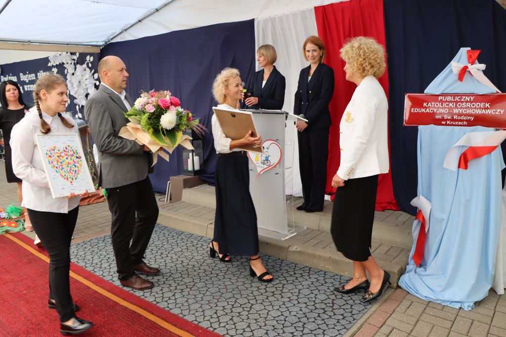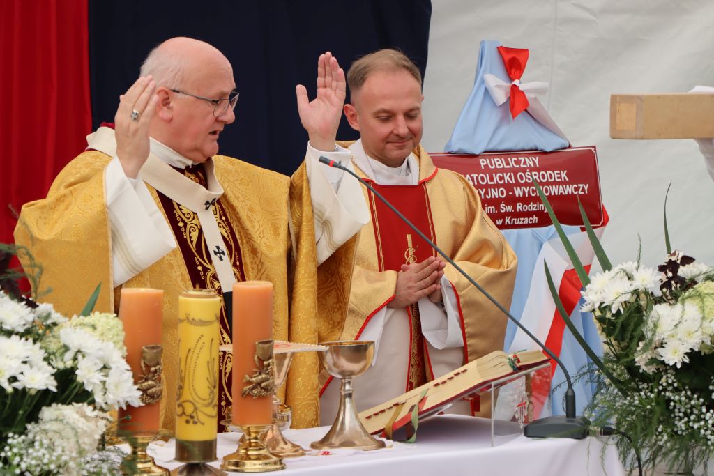 Publiczny Specjalny Katolicki Ośrodek Edukacyjno-Wychowawczy w Kruzach może już szczycić się swoim Patronem. To Święta Rodzina, która od teraz będzie czuwała nad podopiecznymi tego wyjątkowego ośrodka. – Dziękujemy Bogu za to dzieło, które trwa już 25 lat. Dziękujemy Bogu także za ludzi, którzy podjęli się tego trudu – podkreślał na wstępie do Eucharystii abp Józef Górzyński, metropolita warmiński. Oprócz nadania imienia, ośrodek otrzymał także sztandar, a zaproszeni goście mogli po raz pierwszy usłyszeć hymn placówki.