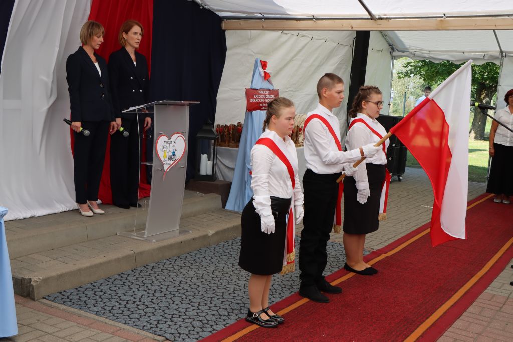 Zwieńczeniem uroczystości było premierowe odśpiewanie hymnu ośrodka, którego słowa napisała Adela Wiśniewska – jedna z nauczycielek. – Te dzieci oddają nam swoje serce. Pokazujemy im świat. Dzieci mogą poznawać otaczająca rzeczywistość całymi zmysłami. Nasze dzieci są szczere i uczą nas tej szczerości. Tu jest ich drugi dom i to też wybrzmiało w naszym hymnie. Mamy misję otulać ich miłością i ciepłem – podkreśla Adela Wiśniewska.