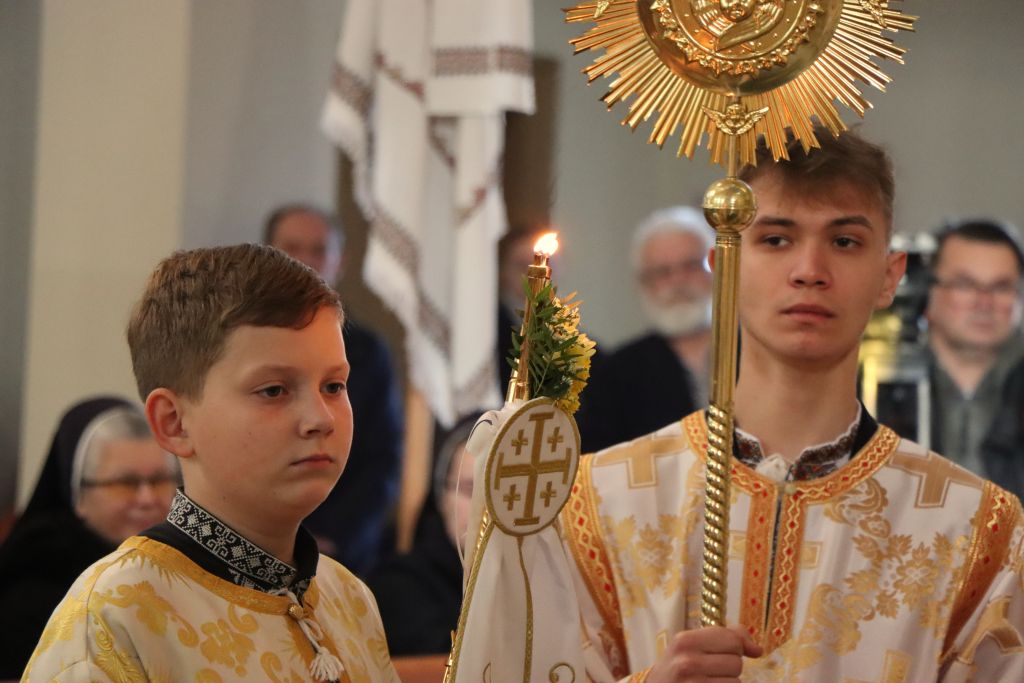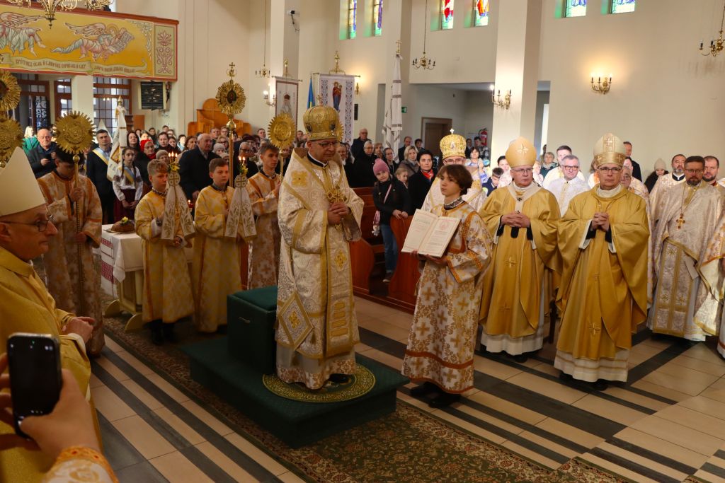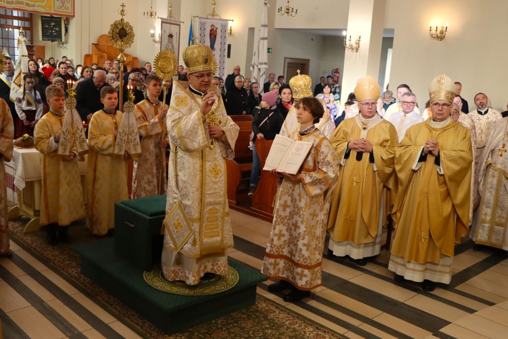Uroczystość rozpoczęła się od procesji. U progu katedry pod wezwaniem Opieki Najświętszej Maryi Panny, wierni powitali chlebem i solą arcybiskupa Eugeniusza Popowicza, metropolitę przemysko-warszawskiego Kościoła greckokatolickiego w Polsce. Wśród zaproszonych kapłanów, obecny był między innymi abp Józef Górzyński, metropolita warmiński, wraz z biskupem Januszem Ostrowskim, biskupem pomocniczym. – Bardzo się cieszę, że mamy tu w pełni osadzoną wspólnotę Kościoła greckokatolickiego. Utworzenie eparchii było szczególnie potrzebne. Widzimy teraz, że nikt się tego nie spodziewał, a eparchia stała się domem dla uchodźców i zakres pracy duszpasterskiej wzrósł. Duszpasterze potrzebują punktu odniesienia, a taki punkt jest wtedy, kiedy jest diecezja – mówi metropolita warmiński.