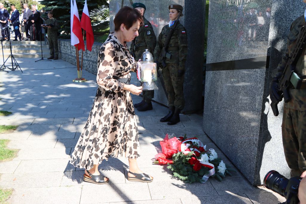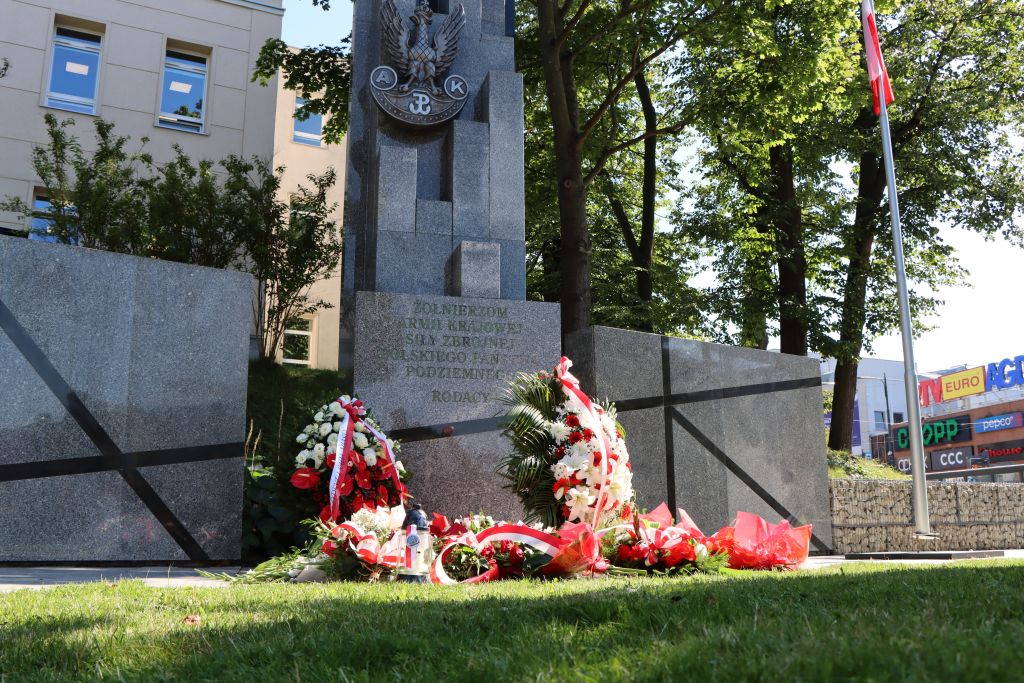 Na zakończenie uroczystości, delegacje złożyły kwiaty i zapaliły znicze pod pomnikiem Armii Krajowej.
