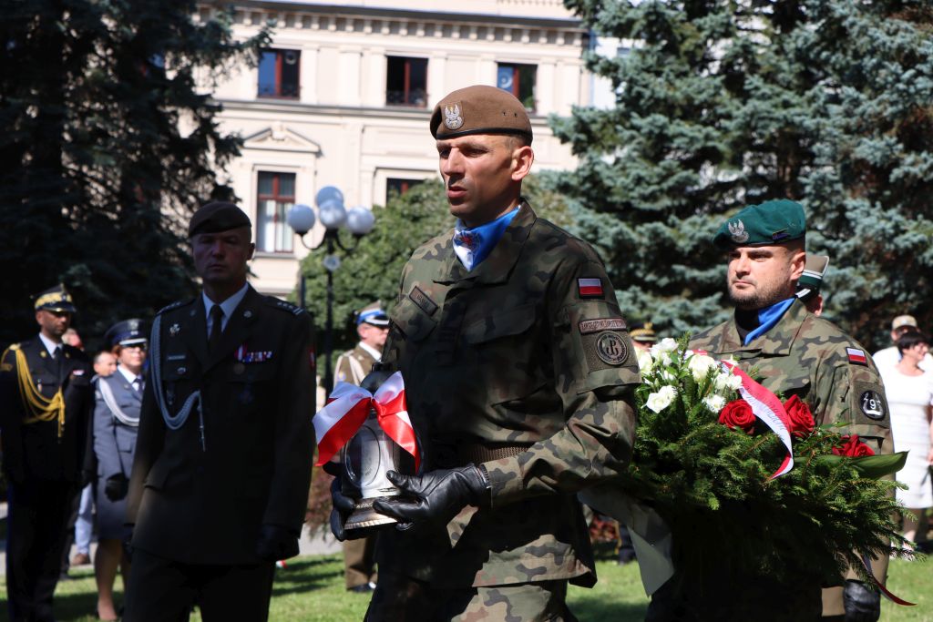 W samo południe, w centrum Olsztyna przed pomnikiem Armii Krajowej, zebrali się przedstawiciele władzy rządowej i samorządowej, a także duchowieństwo oraz mieszkańcy Olsztyna. Punktualnie o 12:00 zawyły syreny, a uroczystość rozpoczęło wspólne odśpiewanie hymnu państwowego. – 86 lat temu Polacy stanęli ramię w ramię w obronie wolności, w obronie człowieka, w obranie Ojczyzny. To właśnie w takich chwilach rodzi się prawdziwa wspólnota, w działaniu, w gotowości do poświęcenia – mówił Robert Szewczyk, prezydent Olsztyna