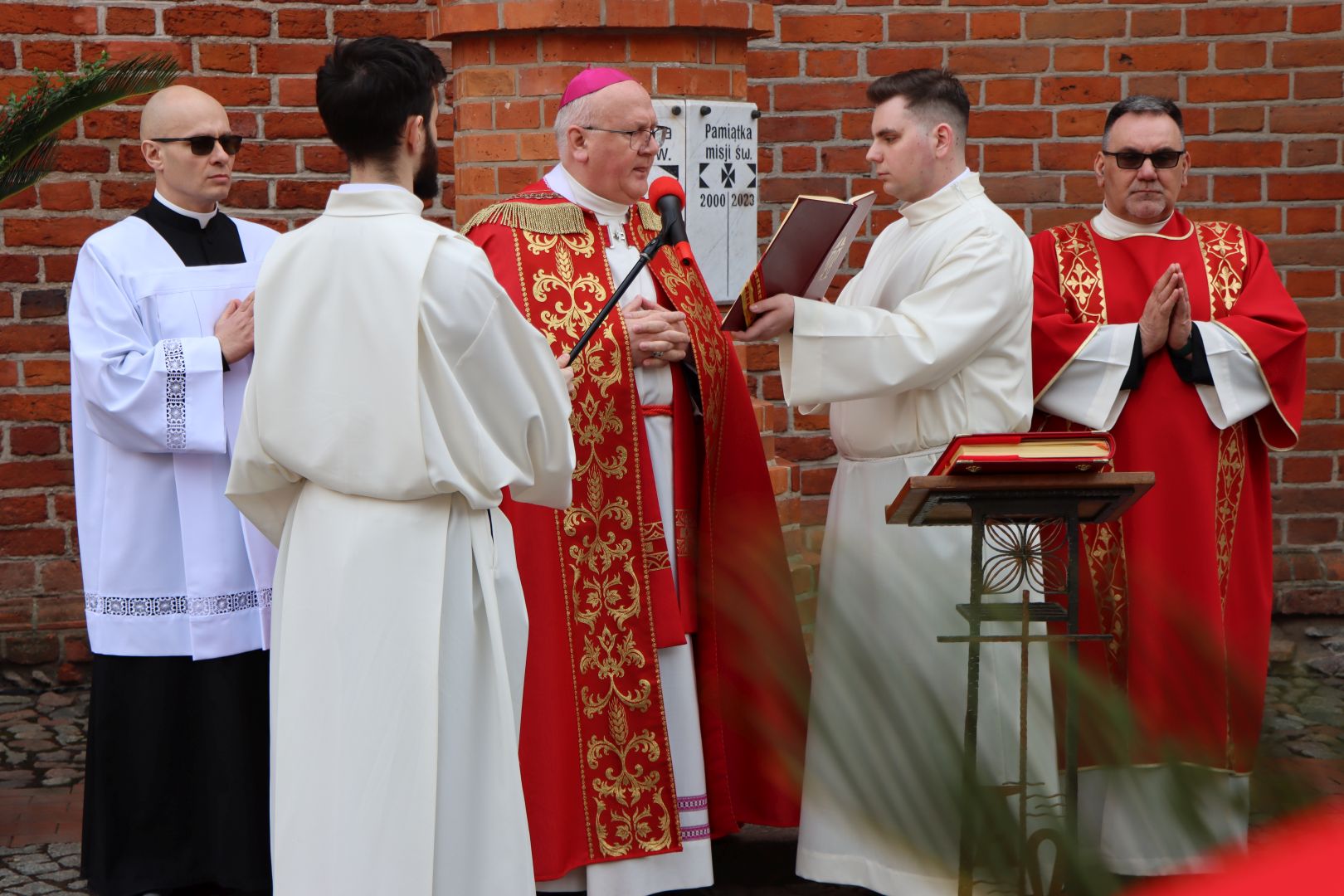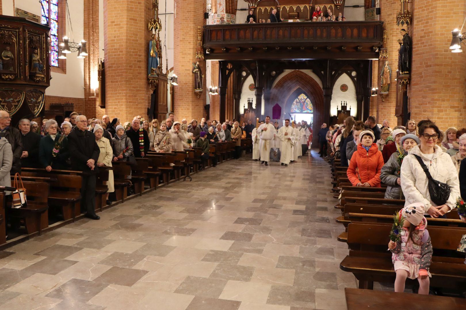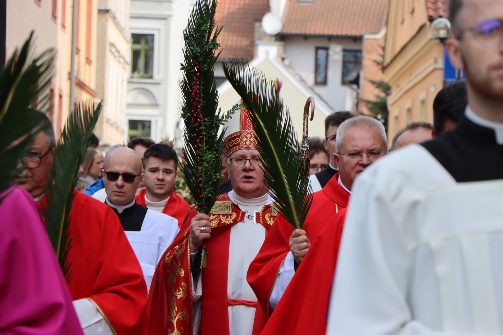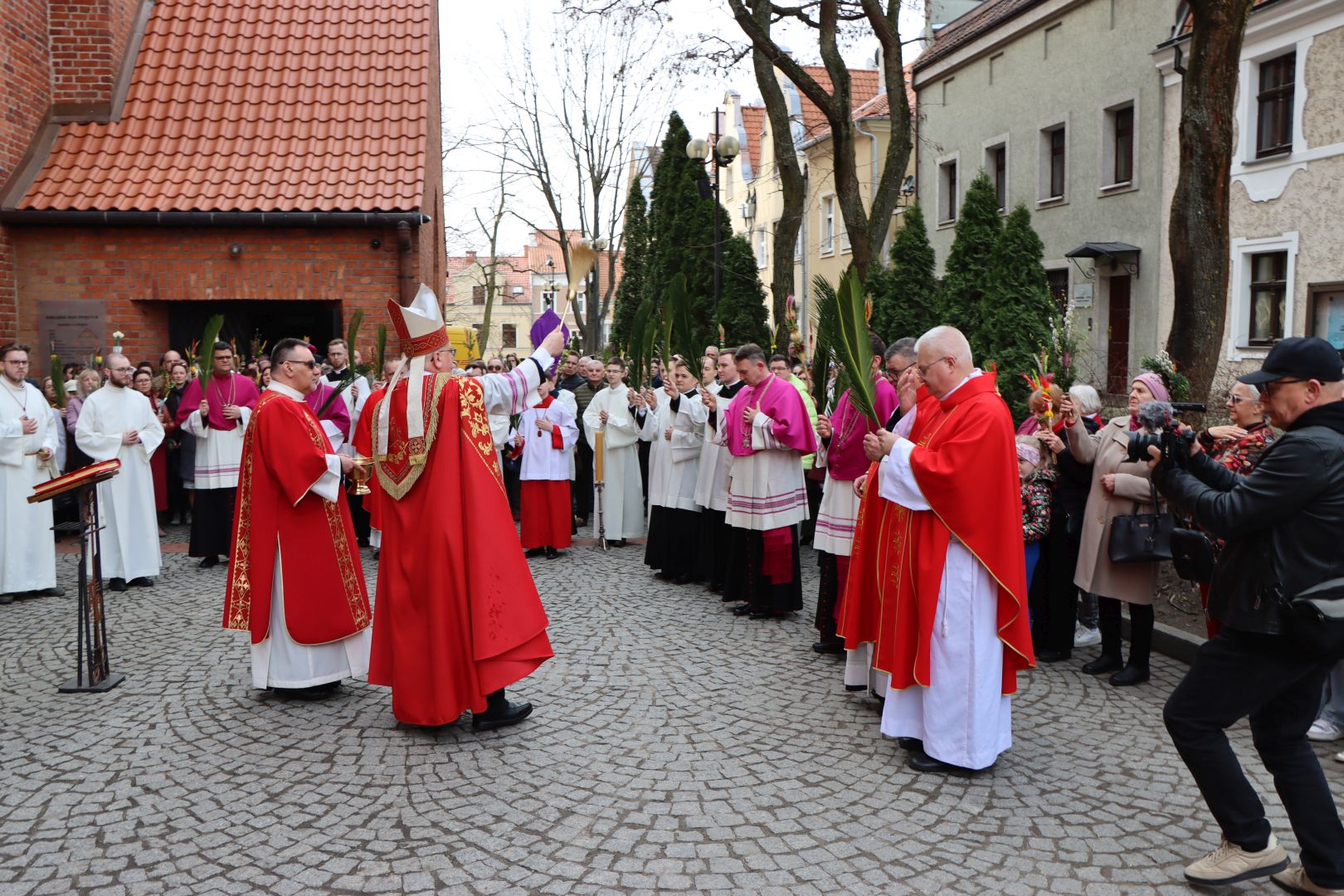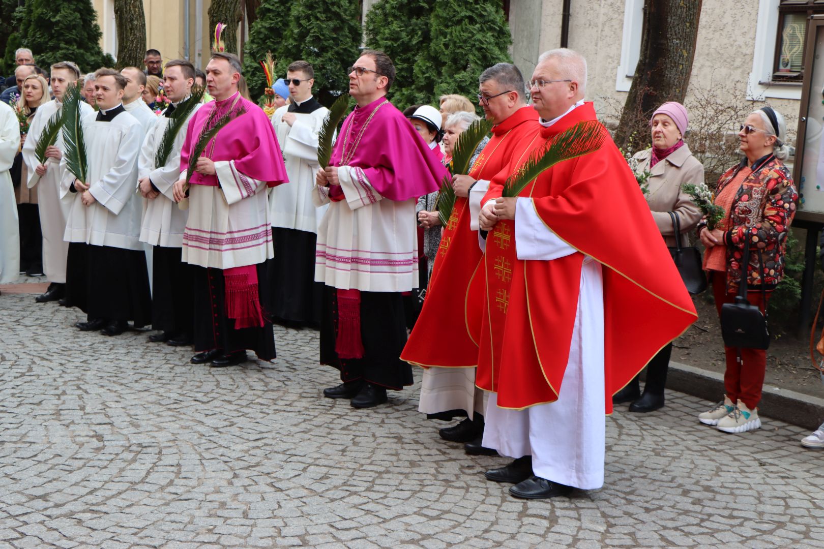 Msza święta tym razem rozpoczęła się na zewnątrz świątyni. U stóp misyjnego krzyża, wierni z palmami w dłoniach, zgromadzili się, by wysłuchać Ewangelii mówiącej o triumfalnym wjeździe Jezusa do Jerozolimy. Następnie abp Józef Górzyński, metropolita warmiński, poświęcił palmy, a wierni, w asyście kapłanów i służby liturgicznej, procesyjnie weszli do kościoła na pamiątkę chrystusowego wjazdu do miasta.