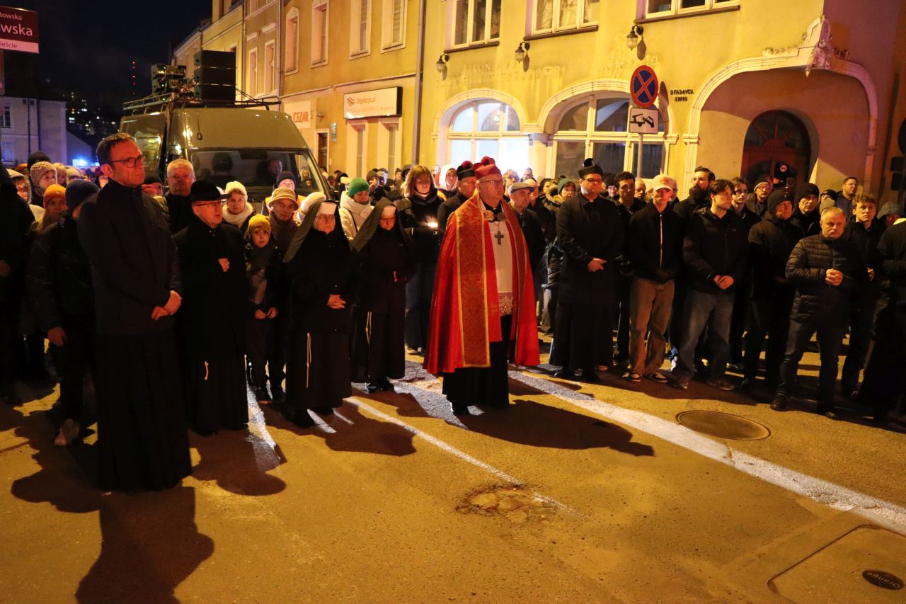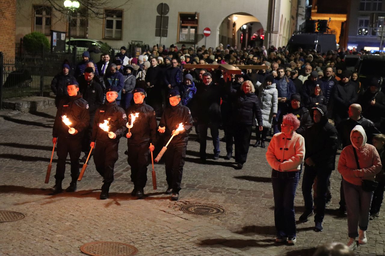 Po Mszy świętej, wierni niosąc wielki, drewniany krzyż, ruszyli ulicami Starego Miasta. Zatrzymywali się przy poszczególnych stacjach, o które zadbali harcerze. Tam można było usłyszeć rozważania przygotowane przez ks. Dariusza Sonaka, a które dotyczyły samotności. Uczestnicy Drogi Krzyżowej dotarli do ostatniej stacji, która była usytuowana przy kościele pod wezwaniem Świętych Archaniołów Michała, Gabriela i Rafała. – Jestem tu co roku. Ujmuje mnie tłum ludzi kroczących za krzyżem. Idą w skupieniu, niektórzy niosą lampiony i świece. Ja wśród nich. Czuję wówczas, że nie jestem sama, że są ludzie, którzy kochają Chrystusa, żyją Jego nauką, wartościami. Widzę, jak z roku na rok staje się to coraz ważniejsze – wyznała Pani Dorota.
