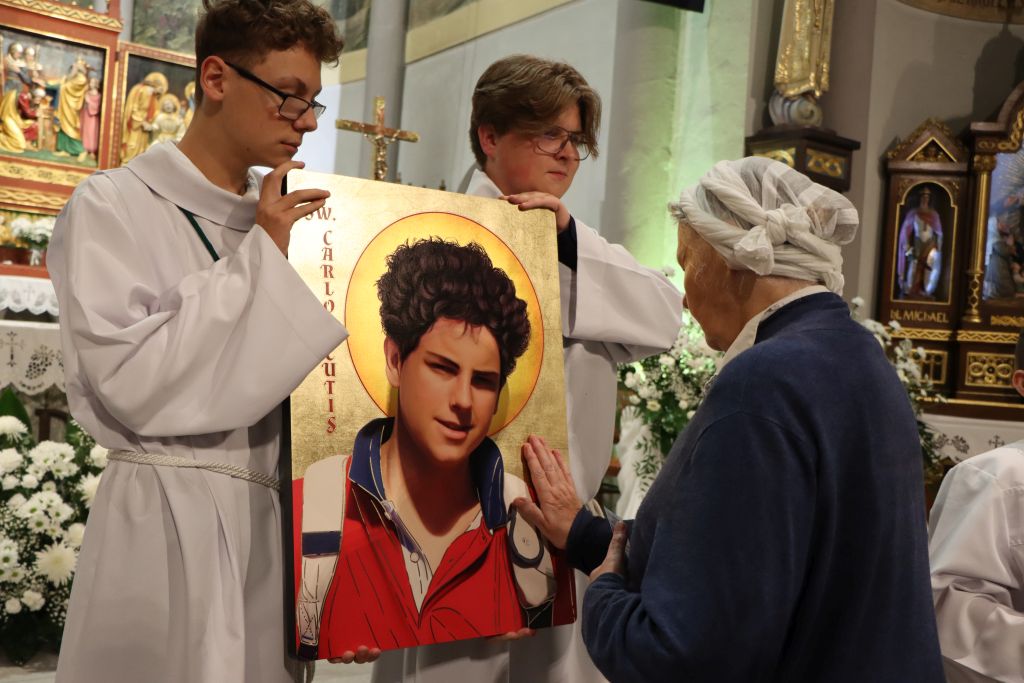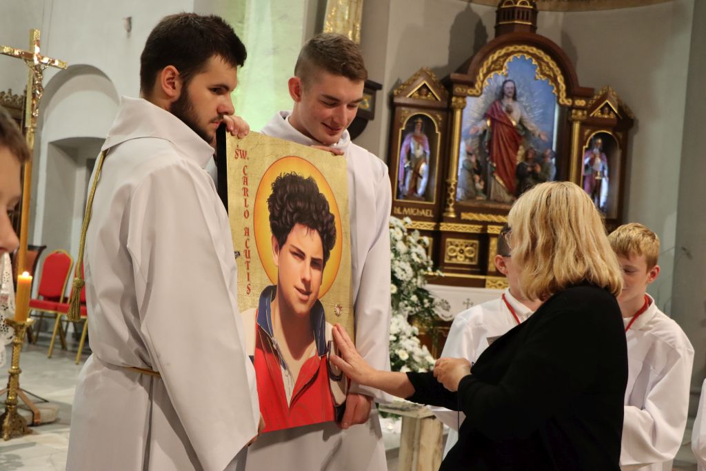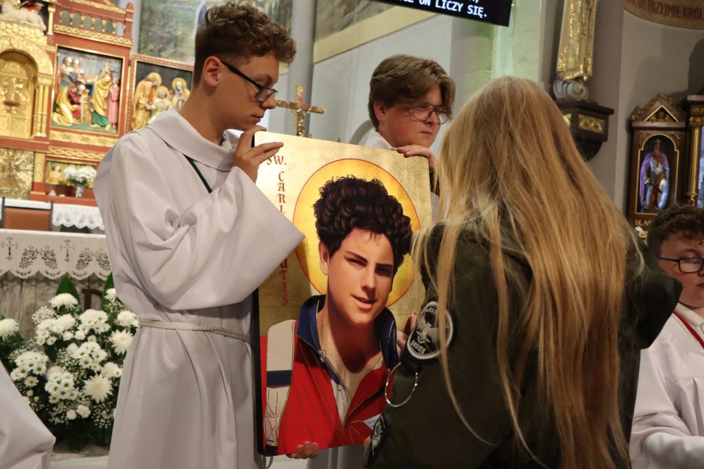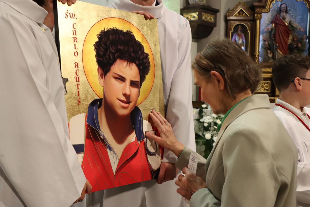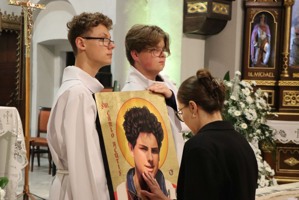 Po zakończonej Eucharystii, wierni adorowali ikonę z relikwiami św. Karola Acutisa. Każdy mógł podejść i dotknąć relikwii młodego świętego. – Gdy w 2020 roku został on błogosławionym, pojawiła się myśl by ściągnąć do parafii Św. Józefa relikwie Karola Acutisa. Nie chcieliśmy by te relikwie tylko stały w kościele. Przez 4 lata jeździliśmy z relikwiami do szkół i parafii. Współczesna młodzież bardzo się do niego upodabnia, bo on jest z naszych czasów. On nas uczy szacunku i miłości do Eucharystii. Teraz trzeba młodzież dobrze ukierunkować, by nie zgasić w nich tego rozgrzanego zapału kroczenia drogą Chrystusa – mówi ks. Kamil Wyszyński.