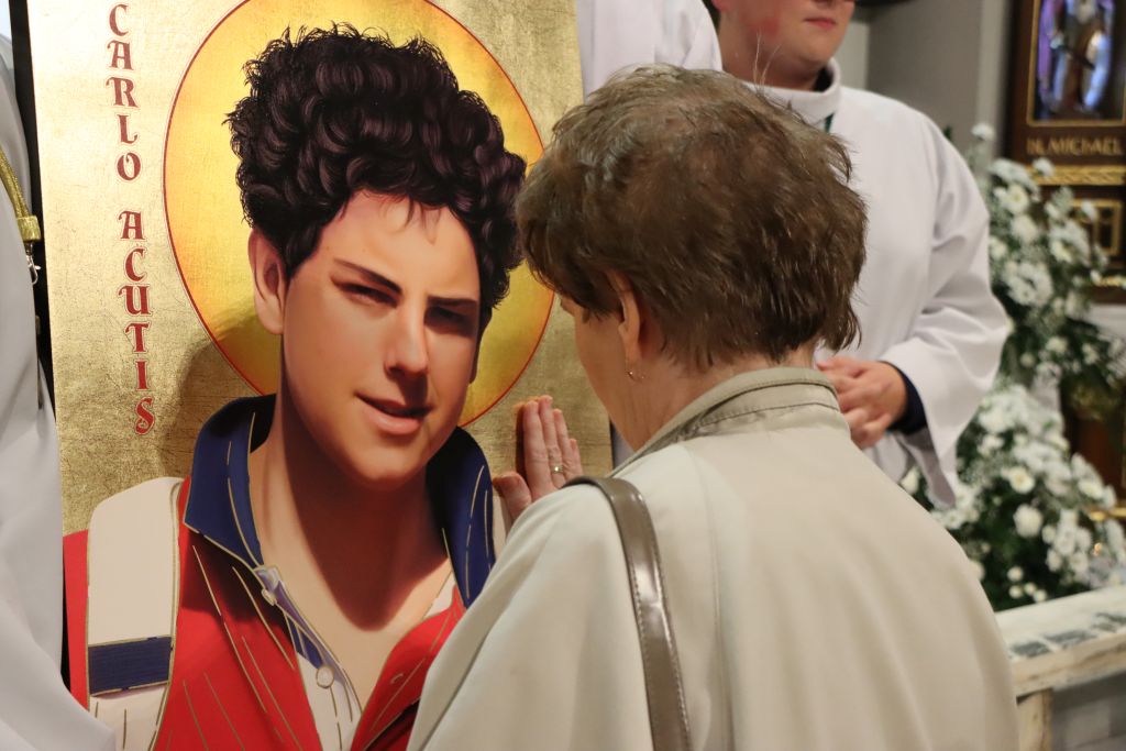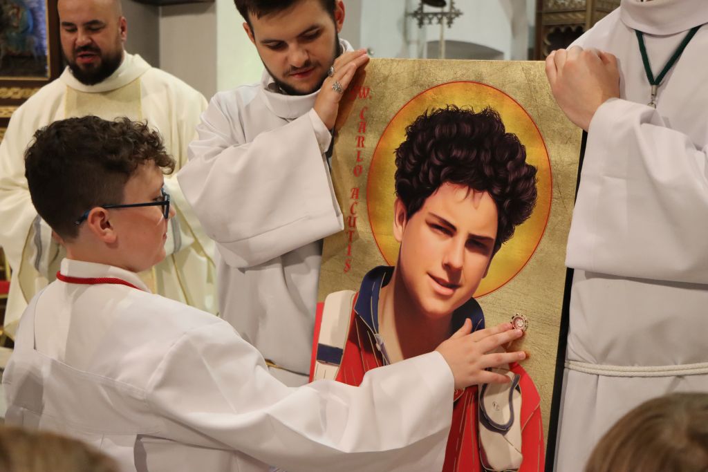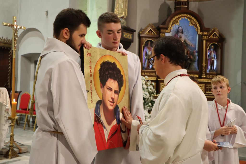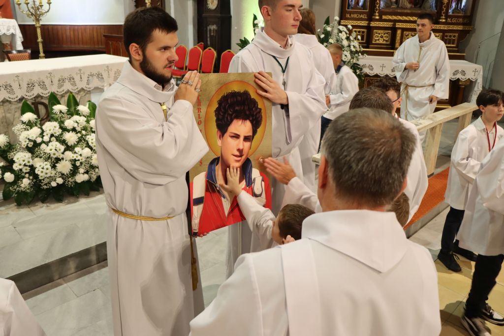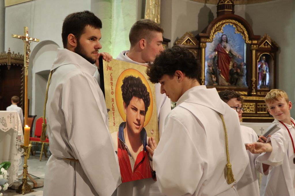 Po zakończonej Eucharystii, wierni adorowali ikonę z relikwiami św. Karola Acutisa. Każdy mógł podejść i dotknąć relikwii młodego świętego. – Gdy w 2020 roku został on błogosławionym, pojawiła się myśl by ściągnąć do parafii Św. Józefa relikwie Karola Acutisa. Nie chcieliśmy by te relikwie tylko stały w kościele. Przez 4 lata jeździliśmy z relikwiami do szkół i parafii. Współczesna młodzież bardzo się do niego upodabnia, bo on jest z naszych czasów. On nas uczy szacunku i miłości do Eucharystii. Teraz trzeba młodzież dobrze ukierunkować, by nie zgasić w nich tego rozgrzanego zapału kroczenia drogą Chrystusa – mówi ks. Kamil Wyszyński.
