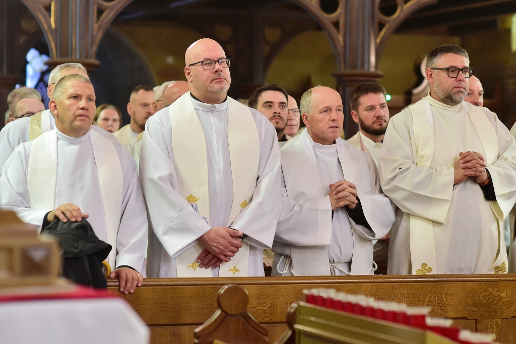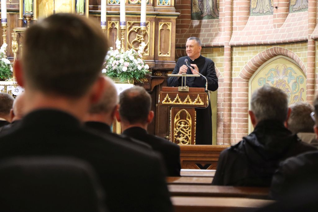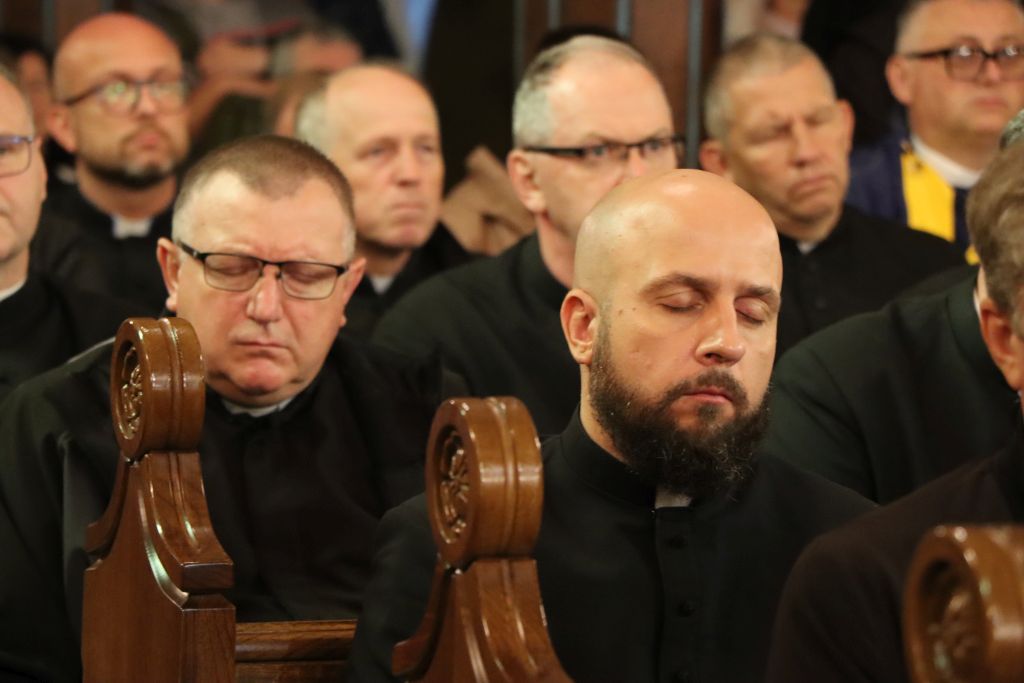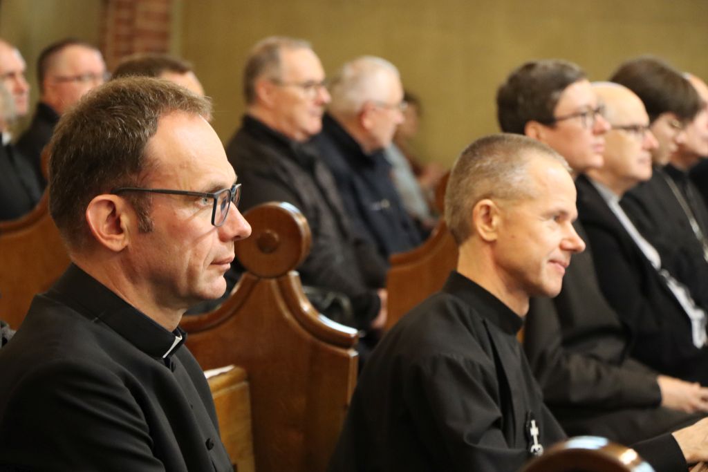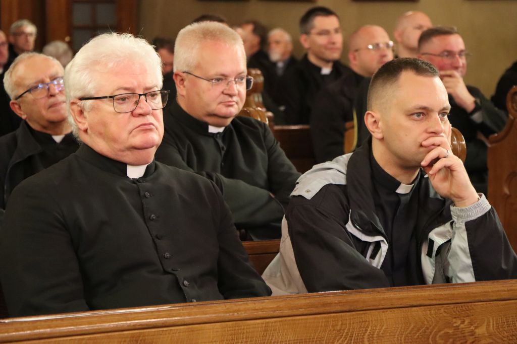 Następnie kapłani uczestniczyli w adoracji Najświętszego Sakramentu i wspólnie odmówili różaniec. Była także możliwość skorzystania ze spowiedzi. W południe Eucharystii przewodniczył abp Józef Górzyński, metropolita warmiński. – Tę Eucharystię ofiarujmy w intencji wszystkich kapłanów naszej archidiecezji. Za zmarłych, za emerytów, za kapłanów chorych, jaki i obecnie czynnie posługujących. Ogarnijmy naszą modlitwą nieobecnych braci, którzy odeszli od naszej posługującej wspólnoty. Niech dobry Bóg będzie z Nimi, jeśli nawet oni od Boga odeszli. Ogarniamy modlitwą tych, którzy są powołani do posługiwania kapłańskiego w naszej archidiecezji – zwrócił się z intencją do obecnych kapłanów abp Józef.