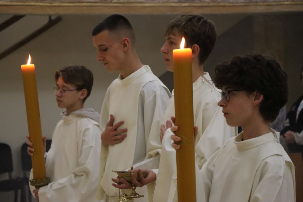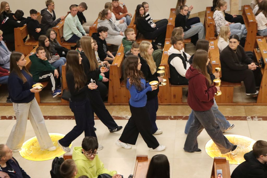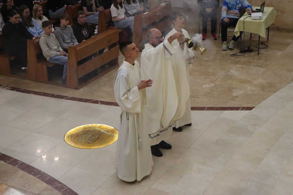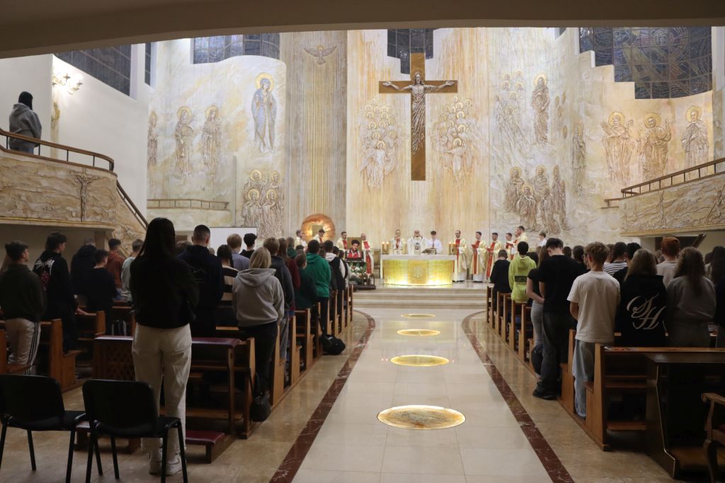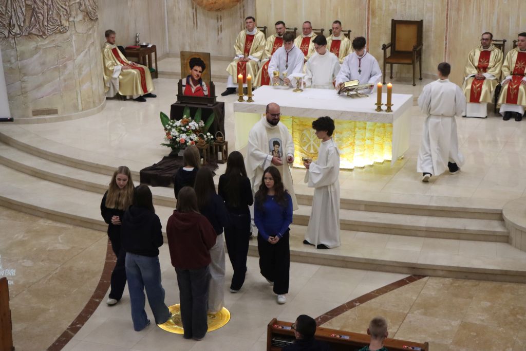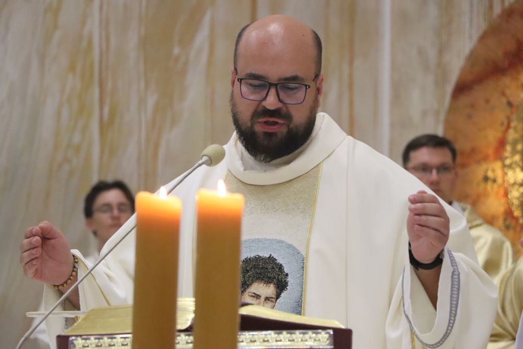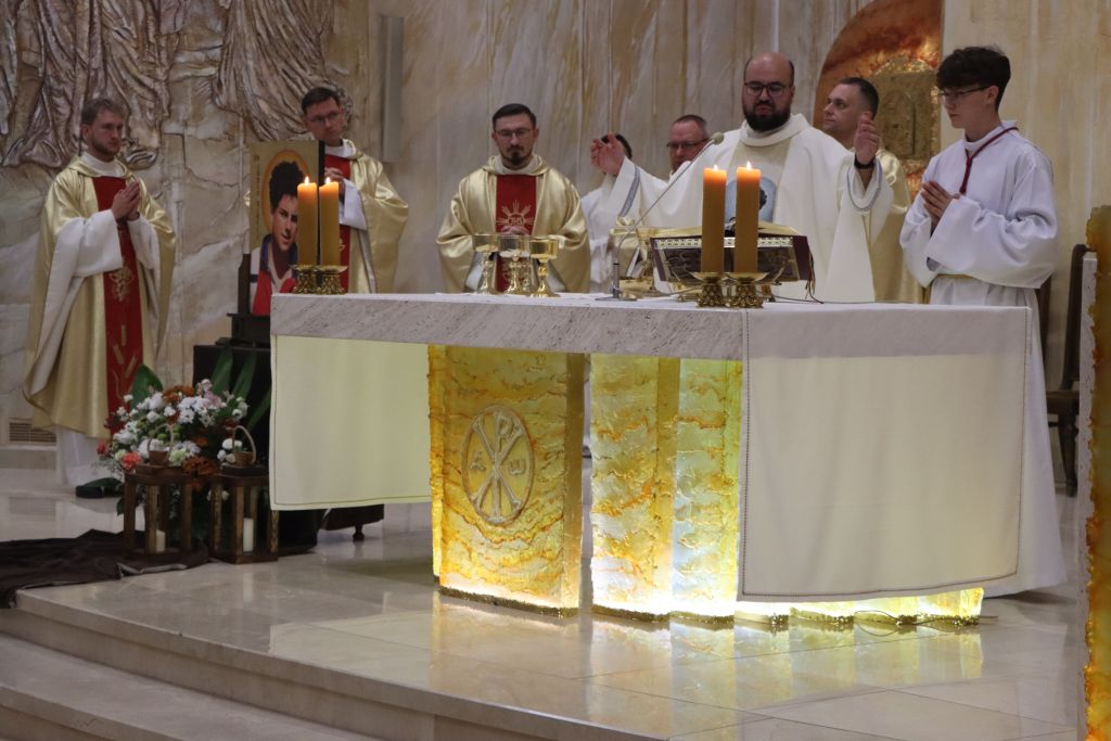 Po części rozrywkowej, przyszedł czas na wspólną modlitwę. Uczestnicy spotkania zebrali się w kościele seminaryjnym na Eucharystii, której przewodniczył ks. Kamil Wyszyński, diecezjalny duszpasterz młodzieży. Przy ołtarzu nie brakowało także kapłanów, którzy przybyli razem z młodzieżą do olsztyńskiego seminarium. – Wszystko zaczęło się od ks. Radka Czerwińskiego i trzeba o tym głośno mówić. On pobudził całe duszpasterstwo młodzieży, a ja kontynuuję jego dzieło. To już co najmniej 10 lat. I to jest piękne, a kiedy ta młodzież chce ze sobą przebywać, to aż serce rośnie. Zapraszamy ich do tego, co robił Karol Acutis – do modlitwy, Eucharystii i do spowiedzi – mówi ks. Kamil Wyszyński.