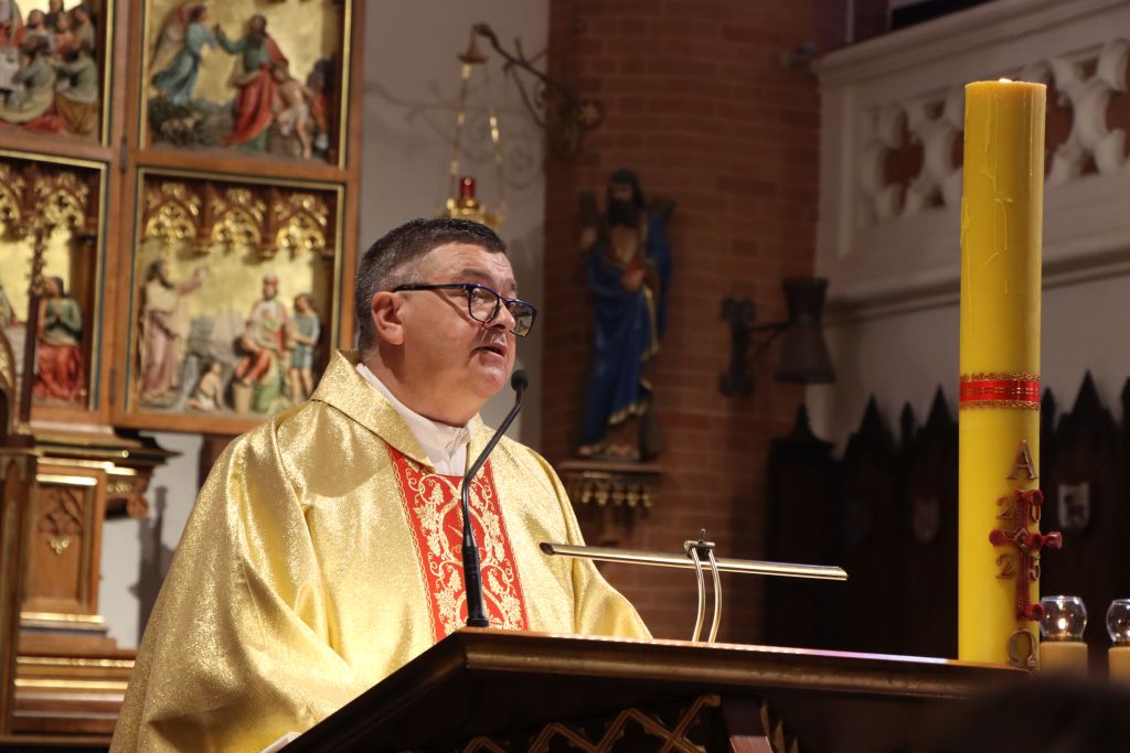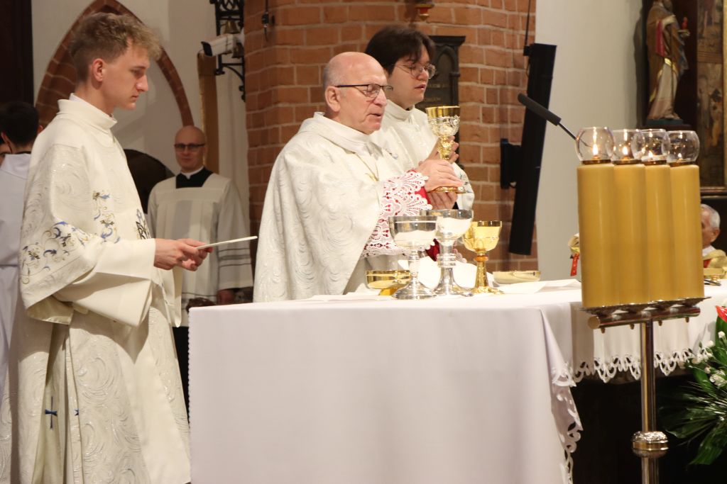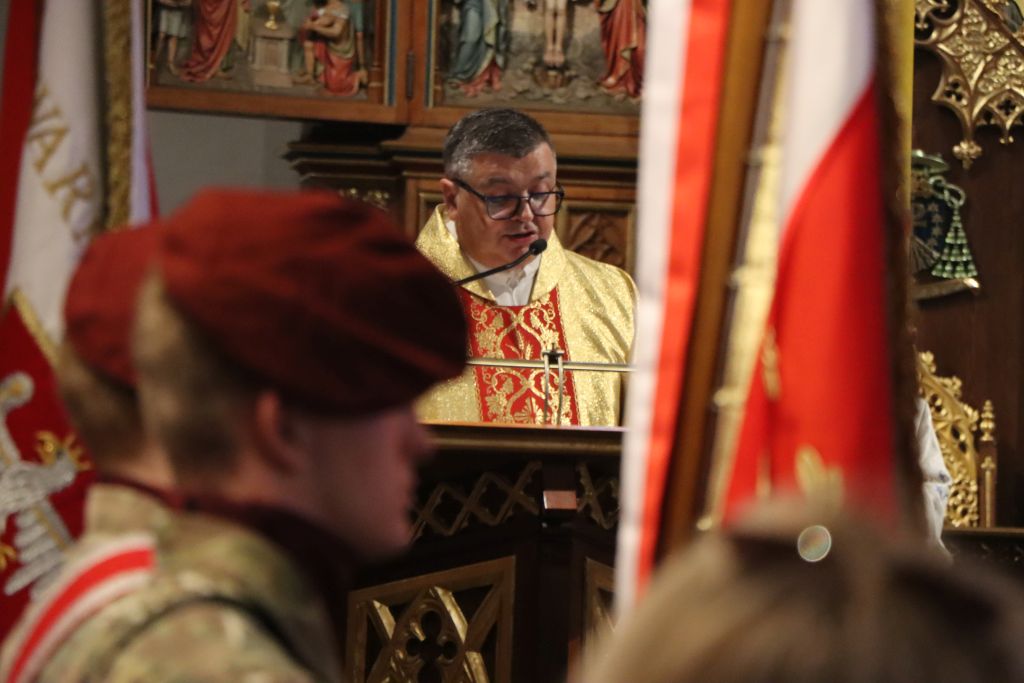Uroczystej Eucharystii przewodniczył ks. infułat Adolf Setlak. Wspólna modlitwa zgromadziła m.in. poczty sztandarowe i przedstawicieli służb mundurowych. Obecni byli także wierni z biało-czerwonymi flagami. W kazaniu, ks. Artur Oględzki, proboszcz parafii św. Jakuba w Olsztynie, zwrócił uwagę na opiekę Matki Bożej nad polskim narodem. Podkreślał, że w dzieje naszego narodu wpisane są dwa nurty: narodowo-patriotyczny i religijny. – Wyraźnym odzwierciedleniem tych dwóch nurtów jest uroczystość Najświętszej Maryi Panny Królowej Polski. Ta uroczystość nierozerwalnie związana jest z historią naszego narodu. Ze swoim znaczeniem bardzo głęboko wpisała się w serca Polaków i jest odbiciem także naszych uczuć religijnych, narodowych i patriotycznych – mówi ks. Oględzki.