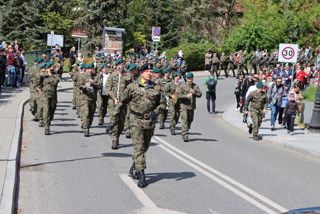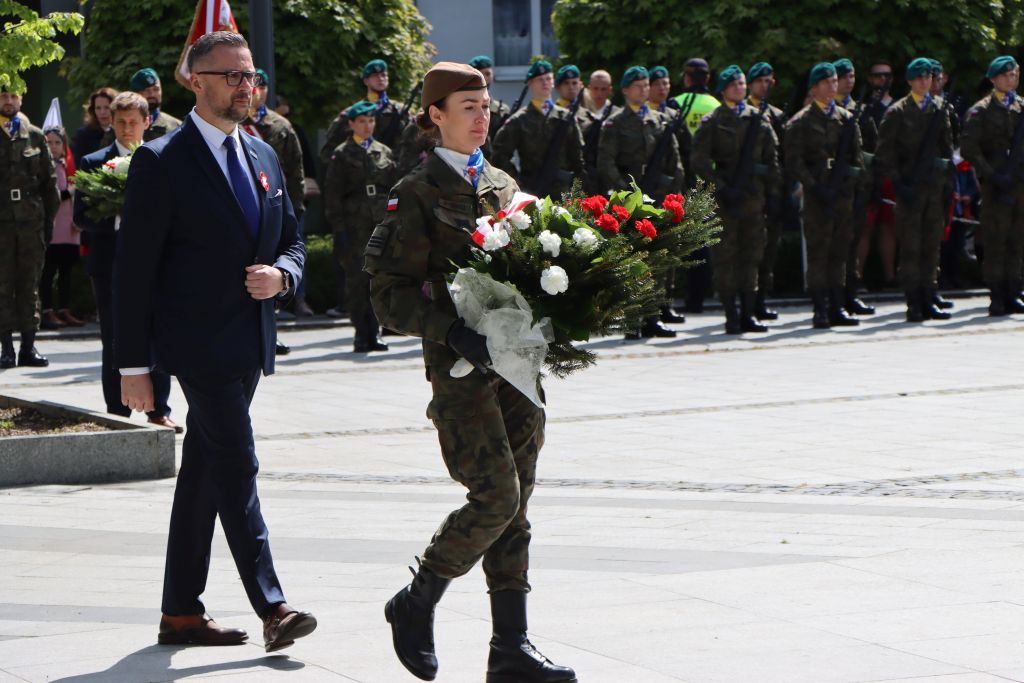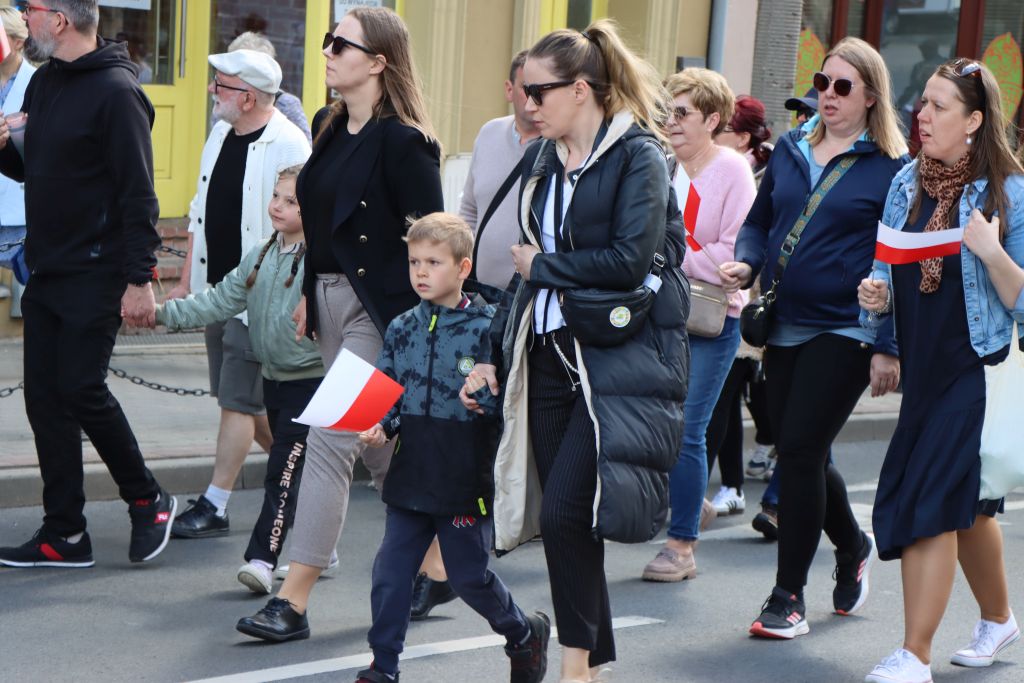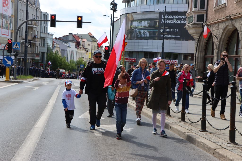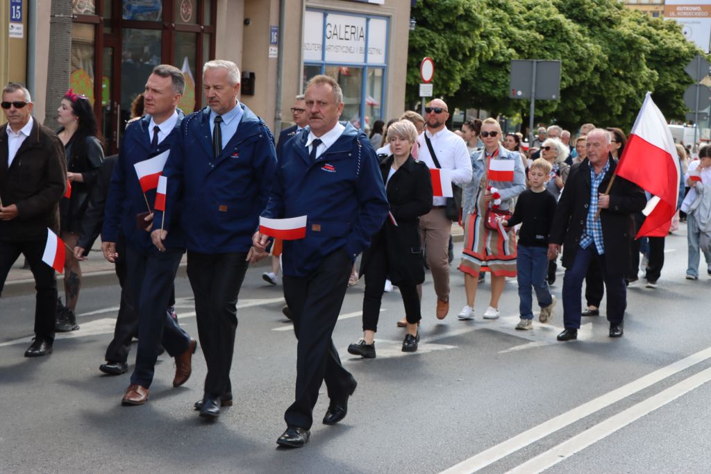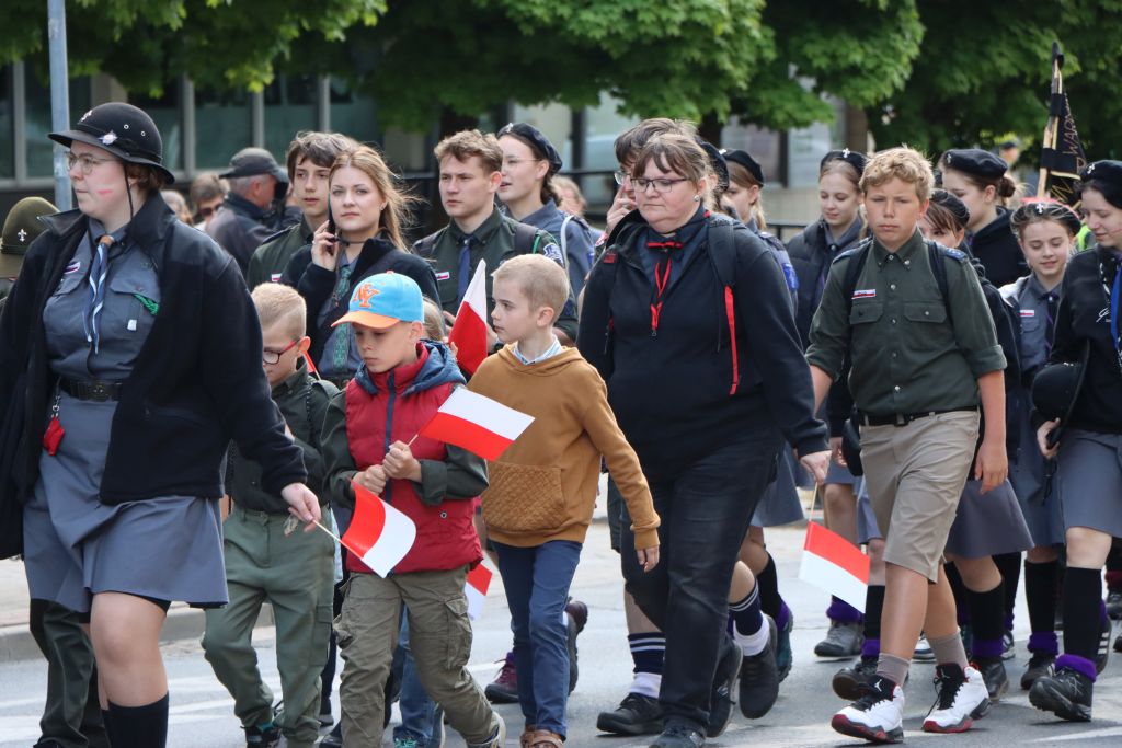Po Mszy św., biało-czerwony korowód, przy dźwiękach orkiestry wojskowej, przeszedł na Plac Konsulatu Polskiego, gdzie odbyła się dalsza część uroczystości. – Trzeci maja to jedna z tych kart kalendarza, które przypominają nam kim jesteśmy i skąd pochodzimy. To dzień, w którym jako wspólnota narodowa, składamy hołd tym, którzy 234 lata temu podjęli próbę zbudowania nowoczesnego i silnego państwa – mówi Radosław Król, wojewoda warmińsko-mazurski.