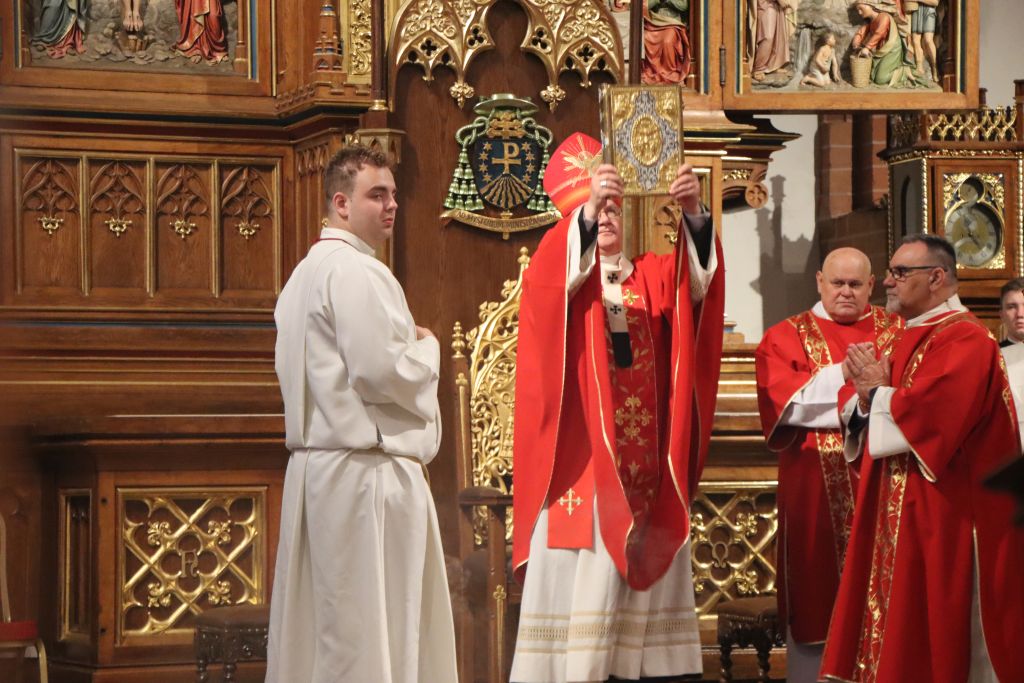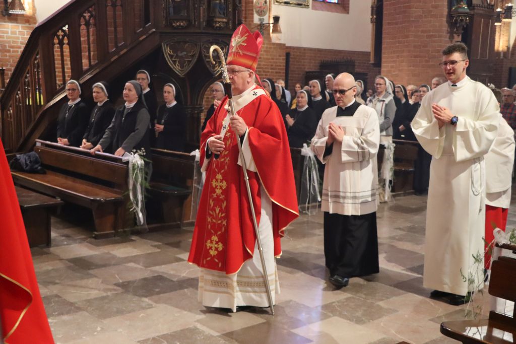 Przekazanie relikwii poprzedziła uroczysta Eucharystia w olsztyńskiej konkatedrze św. Jakuba. Zgromadziła ona przede wszystkim siostry Katarzynki, ale także mieszkańców regionu. Wspólnej modlitwie przewodniczył abp Józef Górzyński, metropolita warmiński. – Dziękujemy Bogu, że właśnie w tym dniu kiedy mówimy o Zesłaniu Ducha Świętego, możemy cieszyć się z pełnej formy objawienia się życia chrześcijańskiego. Dziękujemy Bogu za to, że objawia się w formie pełnej miłości, w męczeństwie – podkreślał w homilii abp Górzyński.
