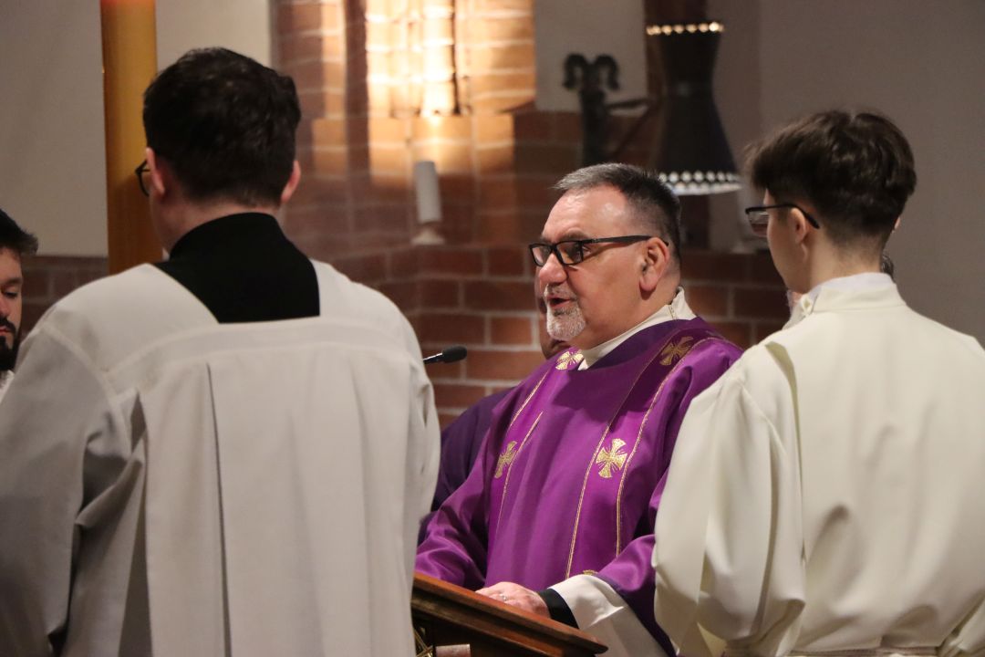 Na wstępie wspólnej modlitwy, wiernych powitał ks. Artur Oględzki. Proboszcz parafii Św. Jakuba w Olsztynie zwrócił uwagę na fakt, iż Wielki Post to czas łaski, nawrócenia i duchowego odnowienia. – Przez czterdzieści dni będziemy przygotowywać nasze serca na obchód największych tajemnic wiary, męki, śmierci i zmartwychwstania Jezusa Chrystusa. W Środę Popielcową stajemy przed Bogiem w prawdzie o sobie, jako ludzie słabi i grzeszni, a zarazem spragnieni miłosierdzia. Znak popiołu, przypomina o kruchości ludzkiego życia i przemijalności wszystkiego ziemskiego. Ale jednocześnie, jak podkreśla w swoim orędziu na Wielki Post papież Leon XIV, ten czas jest wezwaniem do odnowienia nadziei, która rodzi się z powrotu do Boga i zaufania Jego miłości silniejszej niż grzech. Niech ten święty czas stanie się dla nas drogą pojednania z Bogiem, z drugim człowiekiem, z własnym sumieniem – mówi ks. Oględzki.