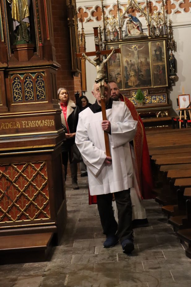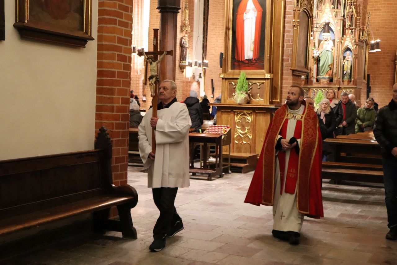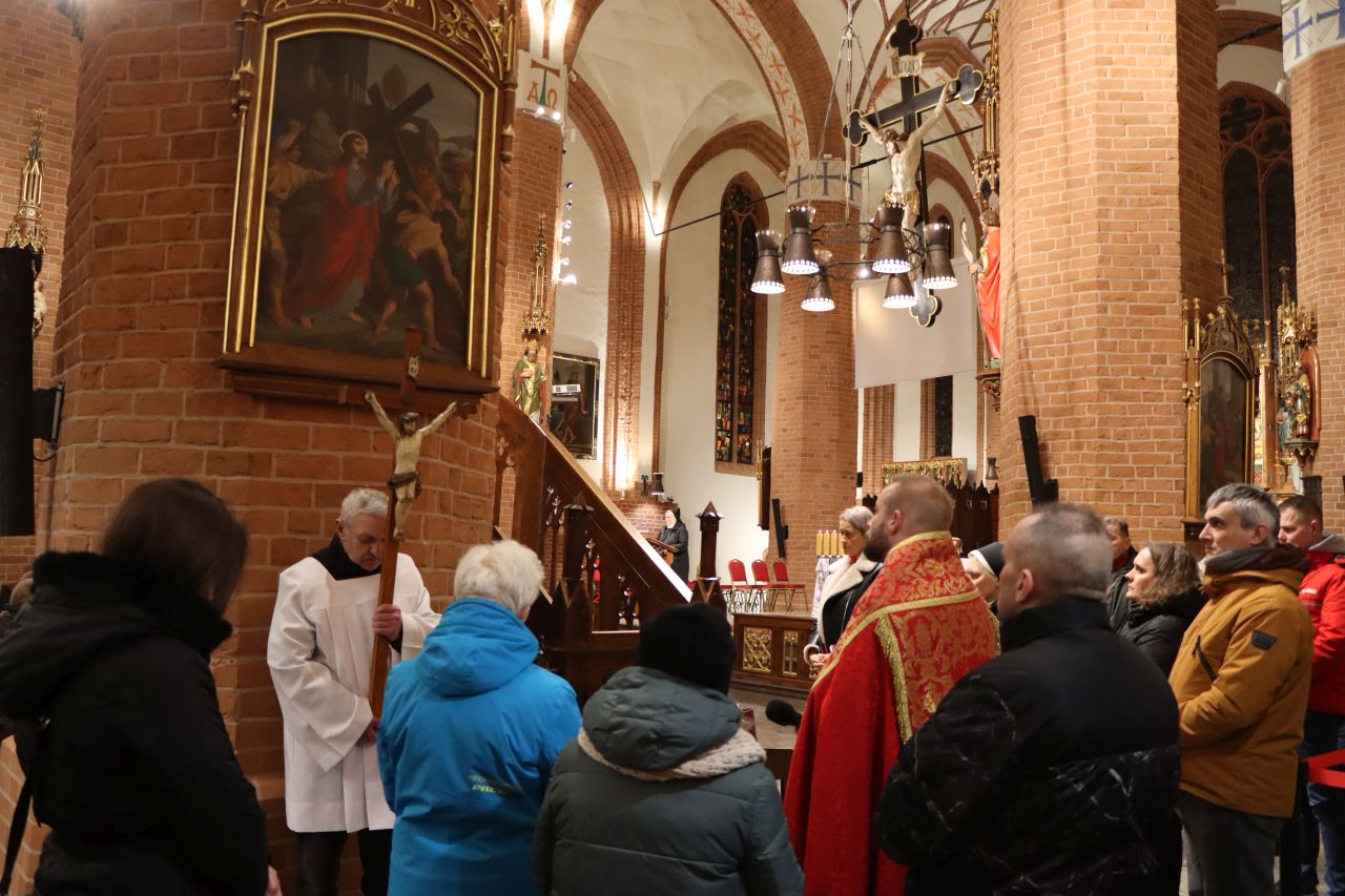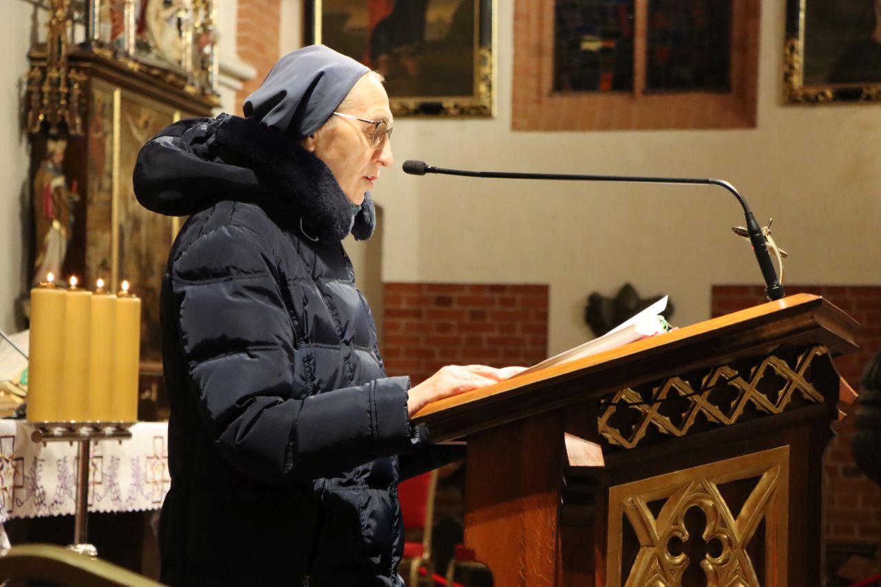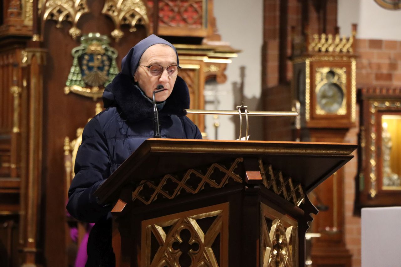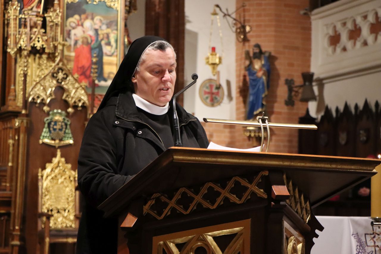 Wspólna modlitwa w olsztyńskiej konkatedrze zakończyła się nabożeństwem Drogi Krzyżowej. Rozważania przygotowała s. Scholastyka Iwańska, delegatka zgromadzenia Sióstr Albertynek posługujących ubogim ds. ochrony dzieci i młodzieży, siostra towarzysząca w telefonie wsparcia „Siostry dla Skrzywdzonych”.