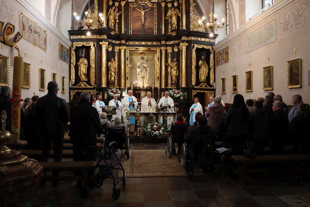 Sanktuarium Matki Bożej Królowej Pokoju w Stoczku Klasztornym wypełniło się wiernymi, którzy w swojej codzienności szukają pokoju w sercu. To podopieczni domów opieki społecznej i zakładów opiekuńczo-leczniczych długoterminowych, którzy każdego dnia zmagają się z chorobą lub samotnością. Dlatego przybyli tu – do Sanktuarium Matki Bożej Królowej Pokoju, by za jej sprawą pokój zagościł w ich sercach. – Choroba nie jest łatwym doświadczeniem i różnie ją przeżywamy. Tutaj przybywają pielgrzymi dotknięci cierpieniem, bo tu także cierpiał więziony Prymas Polski, kardynał Stefan Wyszyński. Matka Boża w tym miejscu wlewa w serca wiernych pokój, nadzieję i ufność – mówi ks. Wojciech Sokołowski, marianin, kustosz Sanktuarium Matki Bożej Królowej Pokoju w Stoczku Klasztornym.