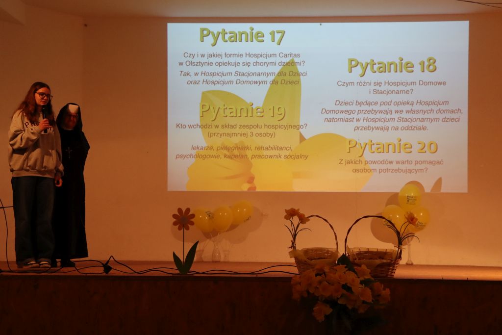 W działania Caritas co roku włączają się nowi wolontariusze – To jest nasze ogromne wsparcie dla tych ludzi w hospicjum. Robimy im przysługę. Poświęcamy im czas, a to jest coś bardzo dobrego – mówi Lena Konopelska, wolontariuszka. W tegorocznej akcji uczestniczyła ponad setka dzieci. – Cieszymy się bardzo, że dzieci angażują się w te akcję. Cieszymy się bardzo, kiedy młodzi wolontariusze przychodzą do naszego hospicjum. Chcemy, by wyciągali wnioski, że mają za co dziękować, że są zdrowi, żeby doceniali to co mają – mówi siostra Luiza, kierownik Hospicjum Stacjonarnego Caritas Archidiecezji Warmińskiej.