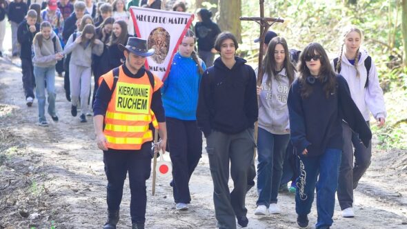 Maturzyści na pątniczym szlaku do Gietrzwałdu