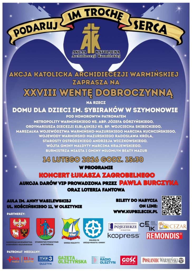 14 lutego br. o godz. 15.30 w Auli im. Anny Wasilewskiej w Olsztynie odbędzie się XXVIII Wenta Dobroczynna organizowana przez Zarząd Akcji Katolickiej Archidiecezji Warmińskiej. Szczegóły na plakacie.